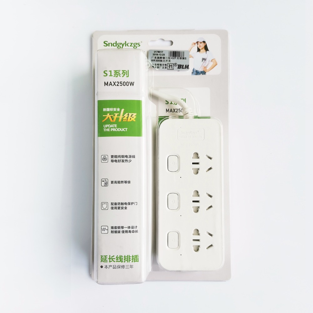 1.8米/2.8米/4.5米  三位+3獨立開關(guān)排插